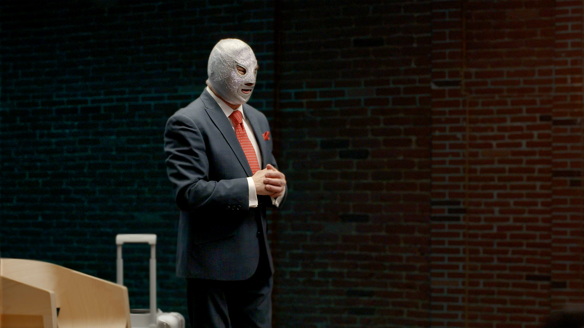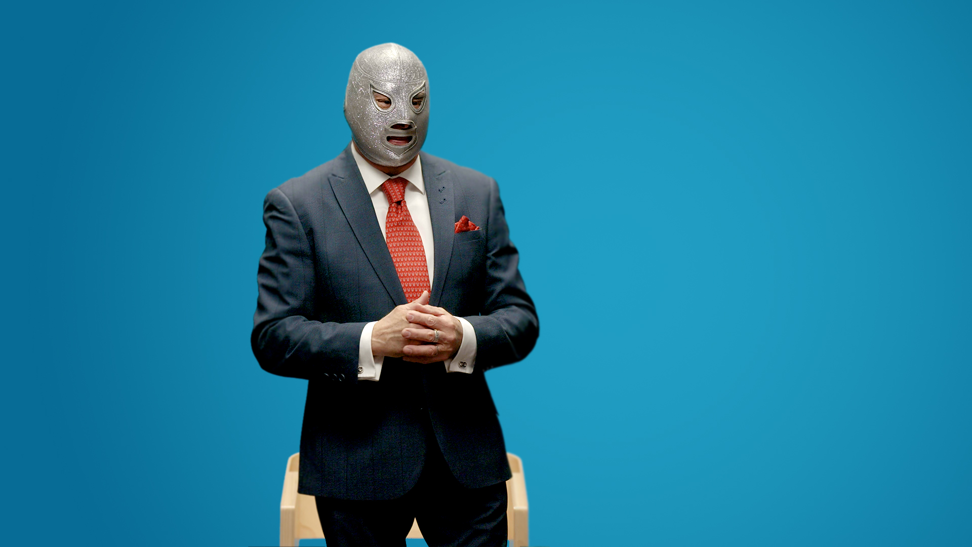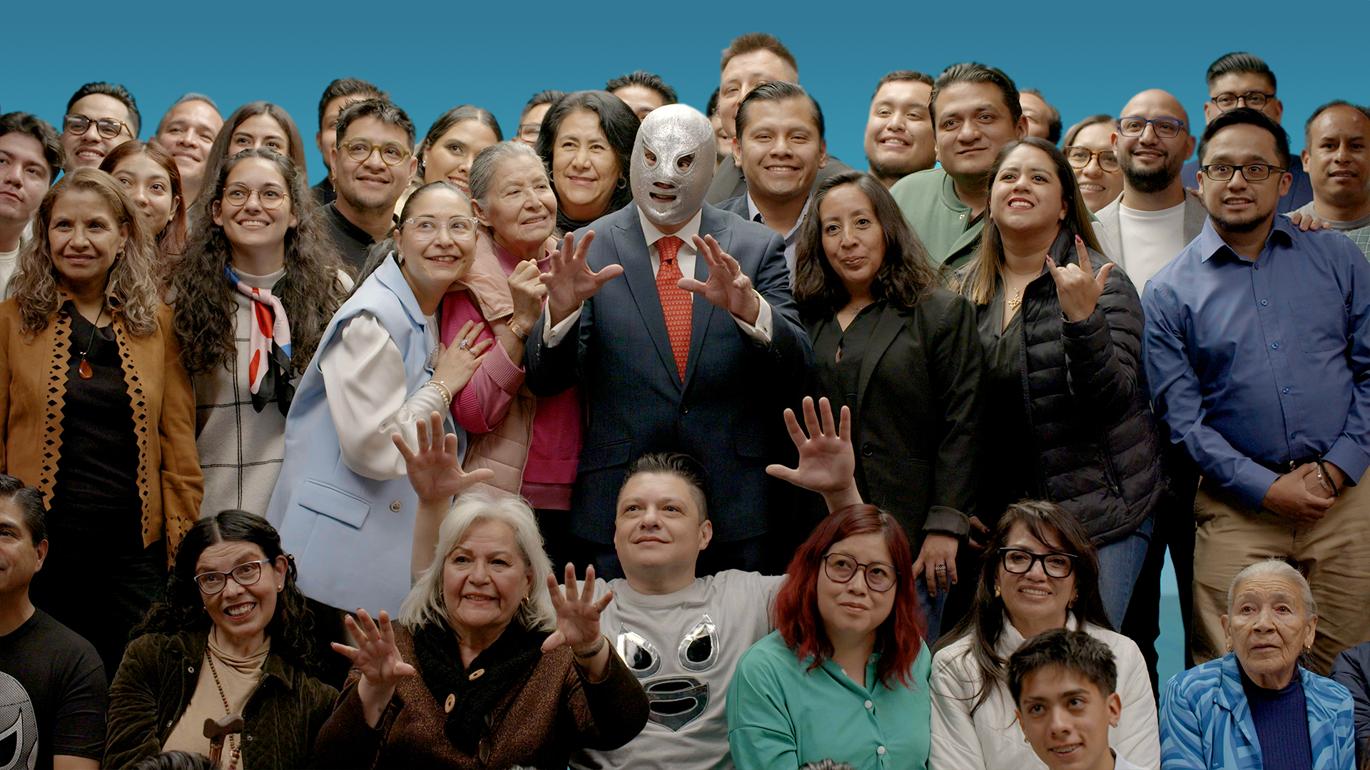 El Hijo del Santo. Algo que distinguió a mi padre y creo que esta es la clave de su éxito, es que él se comprometió con su máscara, entonces la máscara le ganó la lucha. Él se cuidaba tanto que llegaba a un vestidor, imagínense un vestidor normal, como cualquier vestidor cuando vamos a un gimnasio o cuando vamos, un vestidor y pues somos amigos, somos compañeros y todos los luchadores se quitan la máscara y El Santo nunca se la quitaba y todos los luchadores lo veían así como y, ¿por qué no se la quita? Al grado de que muchos luchadores compañeros de él no lo conocieron sin máscara y eran amigos de él, o eran compañeros de vida, de trabajo. Todo el tiempo estaba enmascarado, esa pequeña costumbre lo hizo diferente. Pero El Santo era un ser humano como ustedes. El Hijo del Santo es igual que ustedes. Soy un ser humano normal, es más ¿quieren ver que sí? Apláudanle. nan Esta compañera de vida. A ver, vamos a hacer un ejercicio. Soy, todo lo que ustedes hacen cotidianamente, lo hago yo, pero nadie sabe quién soy. Obviamente, esta máscara… ah, ¿verdad? Esta máscara es el hombre detrás de la máscara. Imagínense que tiene un rostro, soy igual que ustedes, soy un ser humano normal. Pero cuando te pones la máscara de este superhéroe, te transformas, es muy curioso. Esta máscara, que es tela, es un pedazo de tela, pero créanme que tiene una magia muy importante. Y cuando todos hicimos un ejercicio al inicio, cuando pensamos en nuestro superhéroe y me gustaría mucho también invitar a…